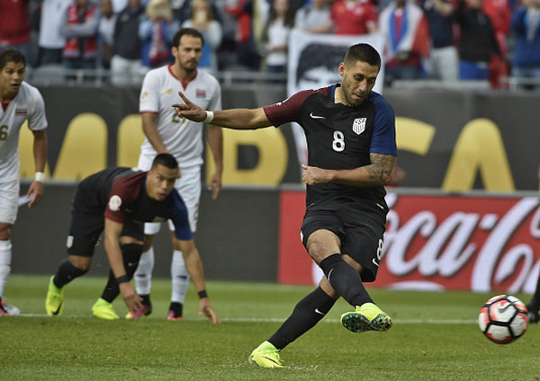 Phút thứ 8, Yedlin từ cánh phải đưa một đường chuyền cao đi ngang trước khung thành Costa Rica, hậu vệ Gamboa xô ngã Wood trong vòng cấm địa và Hoa kỳ hưỡng trái phạt đền. Dempsey bình tĩnh sút và thủ môn không thể đón nổi.
