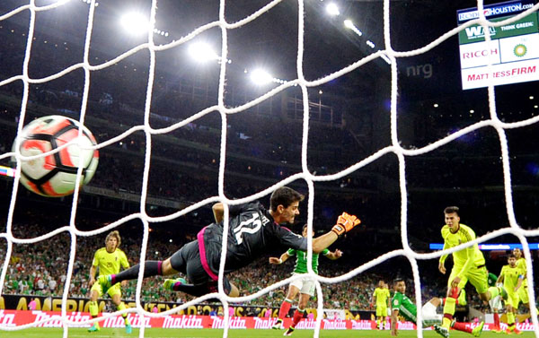 Mexico (4-3-3): Jose Corona; Aguilar, Reyes, Moreno, Torres; Herrera, Molina, Guardado; Aquino, Lozano, Peralta.