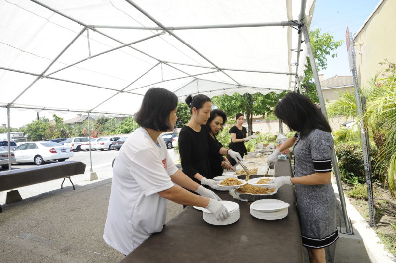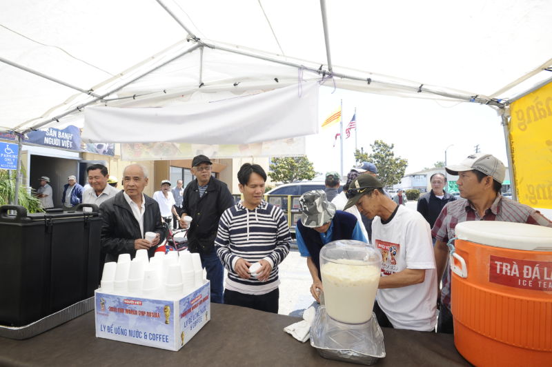 Đến gần 1 giờ trưa, sau khi các trận đấu chấm dứt và các khán giả đã đói bụng, ai cũng ra trước phòng sinh hoạt nhật báo Người Việt để vào xếp hàng nhận mì xào của nhà hàng Mon Cheri.