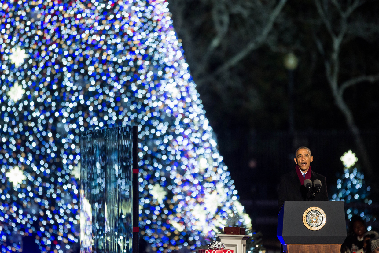 Gia đình Tổng thống Barack Obama đã thắp sáng cây thông Giáng sinh Noel 2016, lần thứ 8 và cũng là lần cuối cùng trong nhiệm kỳ của mình trước sự chứng kiến của hàng nghìn người vào ngày 1 tháng 12 tại Tòa Bạch Ốc.Ca sĩ Eva Longoria, đệ nhất phu nhân Michelle Obama, con gái Sasha Obama và Tổng thống Hoa Kỳ Barack Obama, khai mạc buổi lễ thắp sáng cây Giáng Sinh quốc gia. Năm nay là Lễ Christmas Tree hàng năm lần thứ 94 của Hoa Kỳ.Tham dự sự kiện này còn có các ca sĩ nổi tiếng như Eva Longoria, Marc Anthony, James Taylor, Trisha Yearwood, Garth Brooks, Kelly Clarkson, Caroline Smedvig, Sasha Obama và ông già Noel Jingle Buổi lễ thắp sáng Quốc gia Christmas Tree được tiến hành bên ngoài công viên Ellipse.Gia đình Tổng thống Mỹ Barack Obama nhấn nút thắp sáng cây thông Giáng sinh Noel 2016, lần thứ 8 và cũng là lần cuối cùng trong nhiệm kỳ của mình.Tổng thống Mỹ Barack Obama và mọi người cùng hát bài Jingle Bells với các ca sĩ Eva Longoria, Marc Anthony, James Taylor, Trisha Yearwood, Garth Brooks, Kelly Clarkson, Caroline Smedvig, Sasha Obama và ông già Noel Jingle trong buổi lễ thắp sáng Quốc gia Christmas Tree.Bên cạnh Tổng thống Obama là Đệ nhất phu nhân Michelle và cô con gái Sasha.Trong đêm thắp sáng cây Giáng Sinh quốc gia, Tổng thống Obama đã có bài phát biểu kêu gọi người dân đoàn kết và lạc quan cho tương lai của đất nước Hoa Kỳ.( Hình ảnh : Getty Images/AFP )