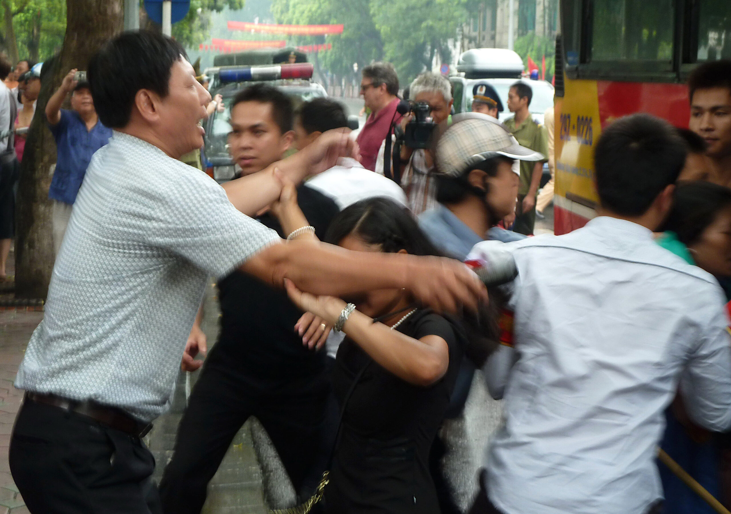 Dù Hiến pháp nói công dân có quyền biểu tình nhưng người dân biểu tình chống Trung Quốc bị cản trở rồi bị bắt tại Hà Nội hồi năm 2011. (Hình: Ian Timberlake/AFP/Getty Images)