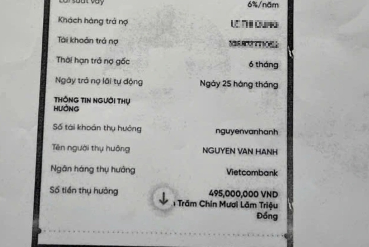 Trong lúc chuyển khoản trên app (ứng dụng) của ngân hàng, bà Dung nhấn nhầm ngân hàng từ Vietcombank thành Vietinbank nên đã chuyển 495 triệu đồng cho bị can Nguyễn Văn Hạnh, trùng tên với người mà bà định chuyển tiền.