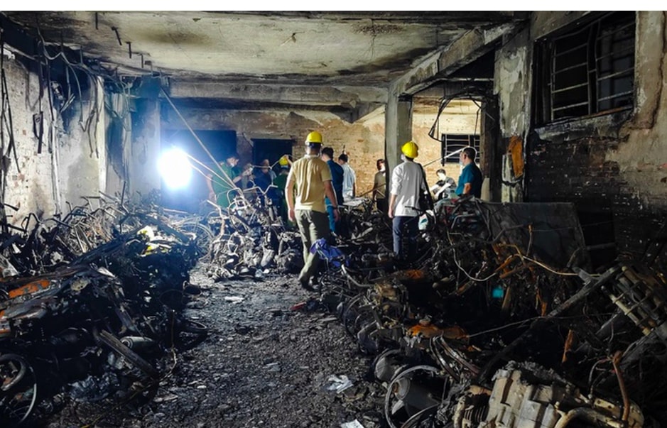 Vụ cháy chung cư mini tại quận Thanh Xuân Hà Nội làm 56 người thiệt mạng ngày 12 Tháng Chín, 2023. (Hình: Người Lao Động)