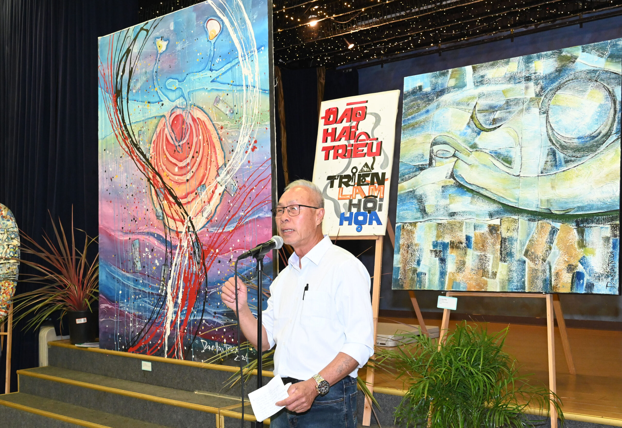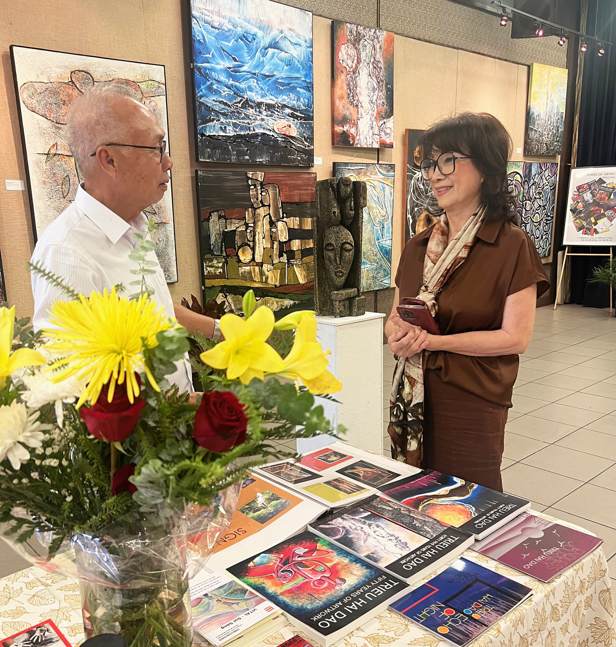 WESTMINSTER, California (NV) – Trong hai ngày Thứ Bảy và Chủ Nhật, 19 và 20 Tháng Bảy, cộng đồng người Việt ở Little Saigon đã chào đón họa sĩ Đào Hải Triều từ San Jose đến mở triển lãm với hơn 50 tác phẩm hội họa tại phòng sinh hoạt nhật báo Người Việt, Westminster.