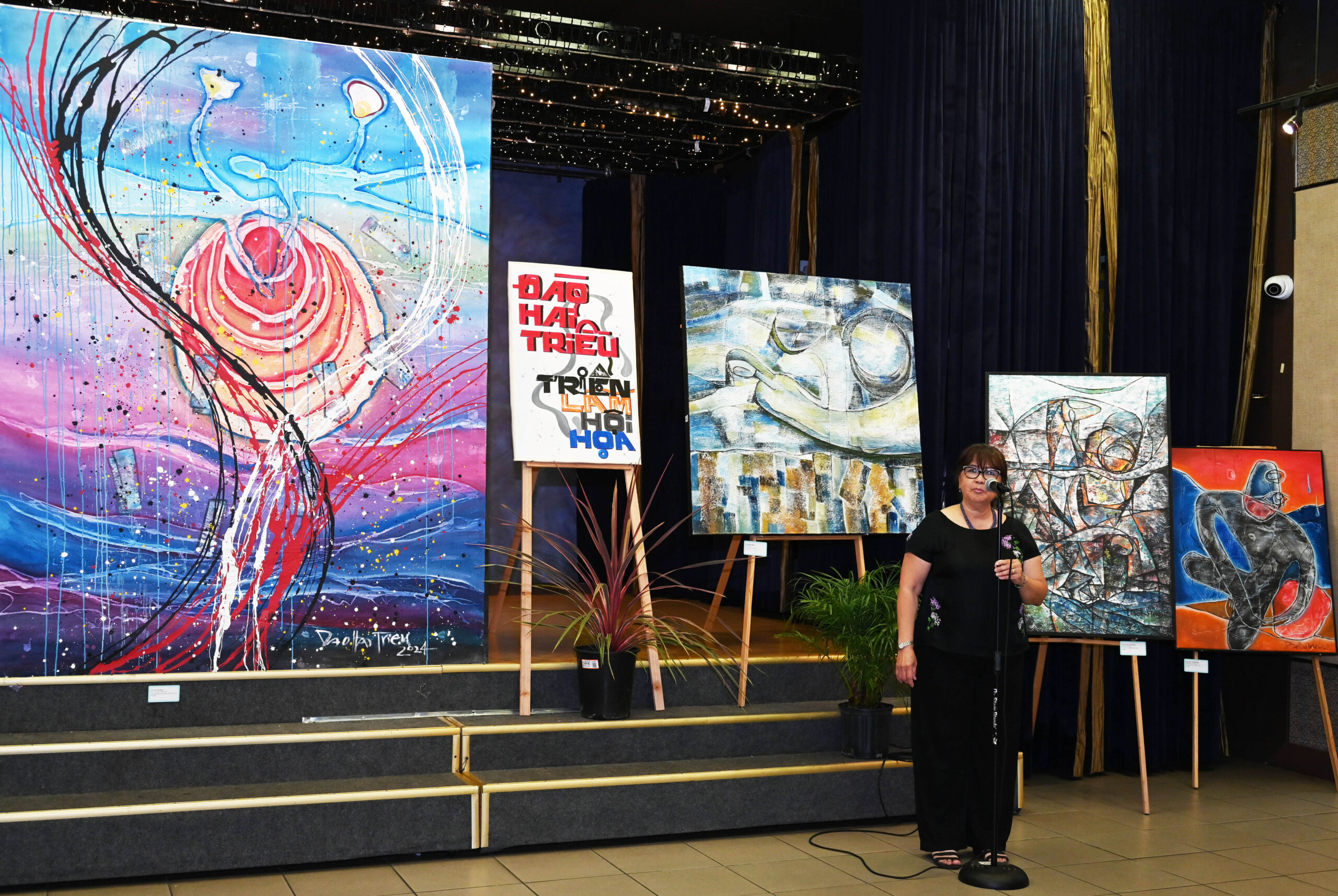 Bà Thủy Tiên là đại diện Hội Sáng Tạo Nghệ Thuật và Âm Nhạc Cho Người Mỹ Gốc Việt (VASCAM), do Giáo Sư Phan Quang Phục và phu nhân sáng lập, và là đơn vị bảo trợ buổi triển lãm. Bà cho biết mục đích của hội là tôn vinh sự sáng tạo âm nhạc và nghệ thuật, và được hân hạnh bảo trợ cuộc triển lãm của họa sĩ Đào Hải Triều, người sáng tác hội họa với niềm đam mê mãnh liệt, kể về những ký ức của tuổi thơ Việt Nam, về hành trình vượt biển tìm tự do, và cuộc sống mới tại Hoa Kỳ.