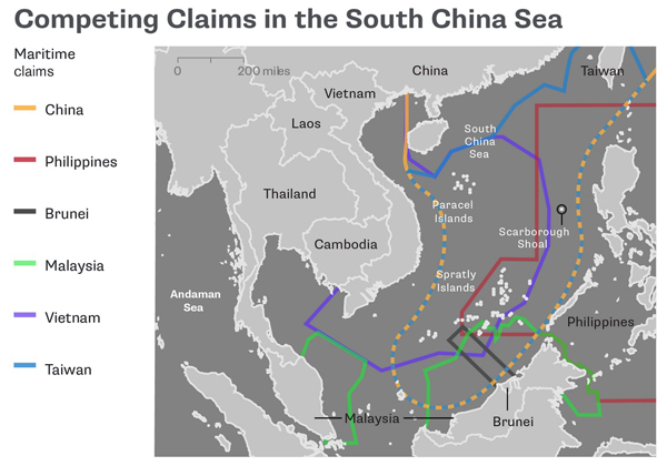 Tuy nói vậy, Bắc Kinh vẫn cứ tiến hành các chương trình bồi đắp đảo nhân tạo, xây dựng các cơ sở quân sự quy mô ở cả quần đảo Hoàng Sa và quần đảo Trường Sa. Khi bị vạch mặt chỉ tên thì Bắc Kinh nói những nơi đó là lãnh thổ của mình có từ “cổ xưa,” không có tranh chấp nên không ai có quyền phản đối. Quần đảo Hoàng Sa của Việt Nam bị Trung Quốc đánh cướp năm 1974 rồi đến 1988 Bắc Kinh xua tàu chiến tới cướp 7 bãi đá ngầm ở Trường Sa.