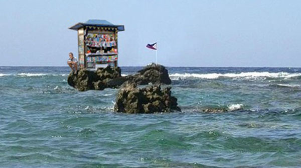 Bãi Scarbourough với quốc kỳ Philippines. Bãi này bị Trung Quốc cưỡng chiếm năm 2012.