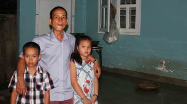 Cháu Oanh cùng em trai và bố. (Hình: Dân Việt)