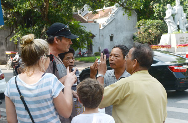 Du khách đang trả giá với mấy ông chạy xe xích lô bằng cách giơ ngón tay ra hiệu vì ngôn ngữ bất đồng. (Hình: AFP/Getty Images)
