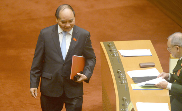 Nguyễn Xuân Phúc khi còn là phó thủ tướng sau khi đọc báo cáo ở Quốc Hội ngày 21 tháng 3, 2016. (Hình: Hoang Dinh Nam/AFP/Getty Images)