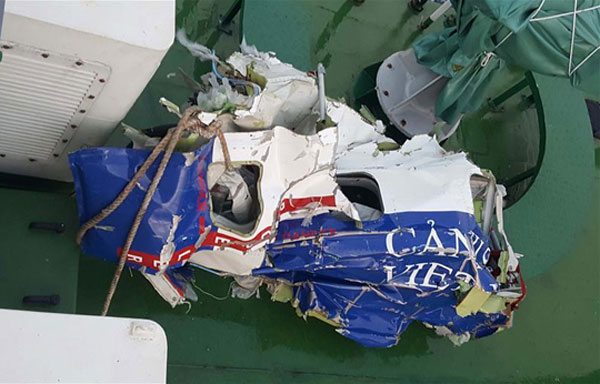 Mảnh vỡ của phi cơ tuần thám loại C-212 bị rơi khi đi tìm phi cơ và phi công mất tích. Tân Hoa Xã dùng ảnh này để minh họa về “chiến dịch hỗ trợ nhân đạo” mà Trung Quốc dành cho Việt Nam. (Hình: www.news.cn)