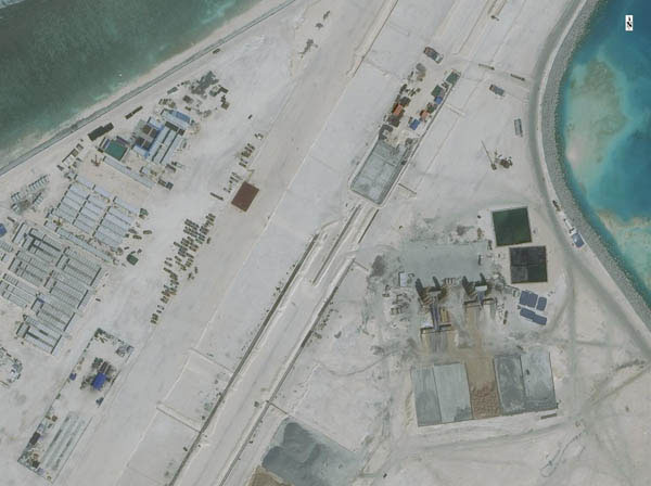 Bãi đá ngầm Subi ở quần đảo Trường Sa đã trở thành đảo nhân tạo mà Trung Quốc xây dựng một phi đạo cho máy bay và các cơ sở quân sự. (Hình: FT)