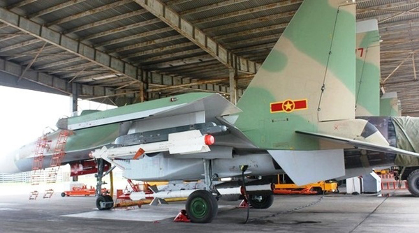 Khu trục đa năng Sukhoi Su-30MK2 của không quân CSVN đậu tại nhà ga. (Hình: VPAF)