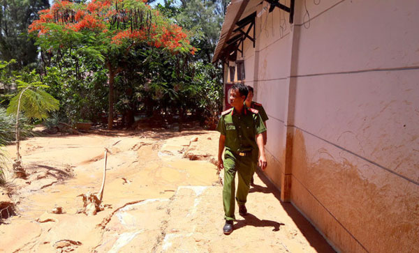 Bà Trần Thị Nam, chủ khu du lịch Hiếu Nam, cho biết: “Từ Tết cho đến nay, hồ chứa nước đãi titan này đã hai lần bị rò rỉ nước, bùn, cát chảy vào và lần này, lại bị vỡ lớn.”