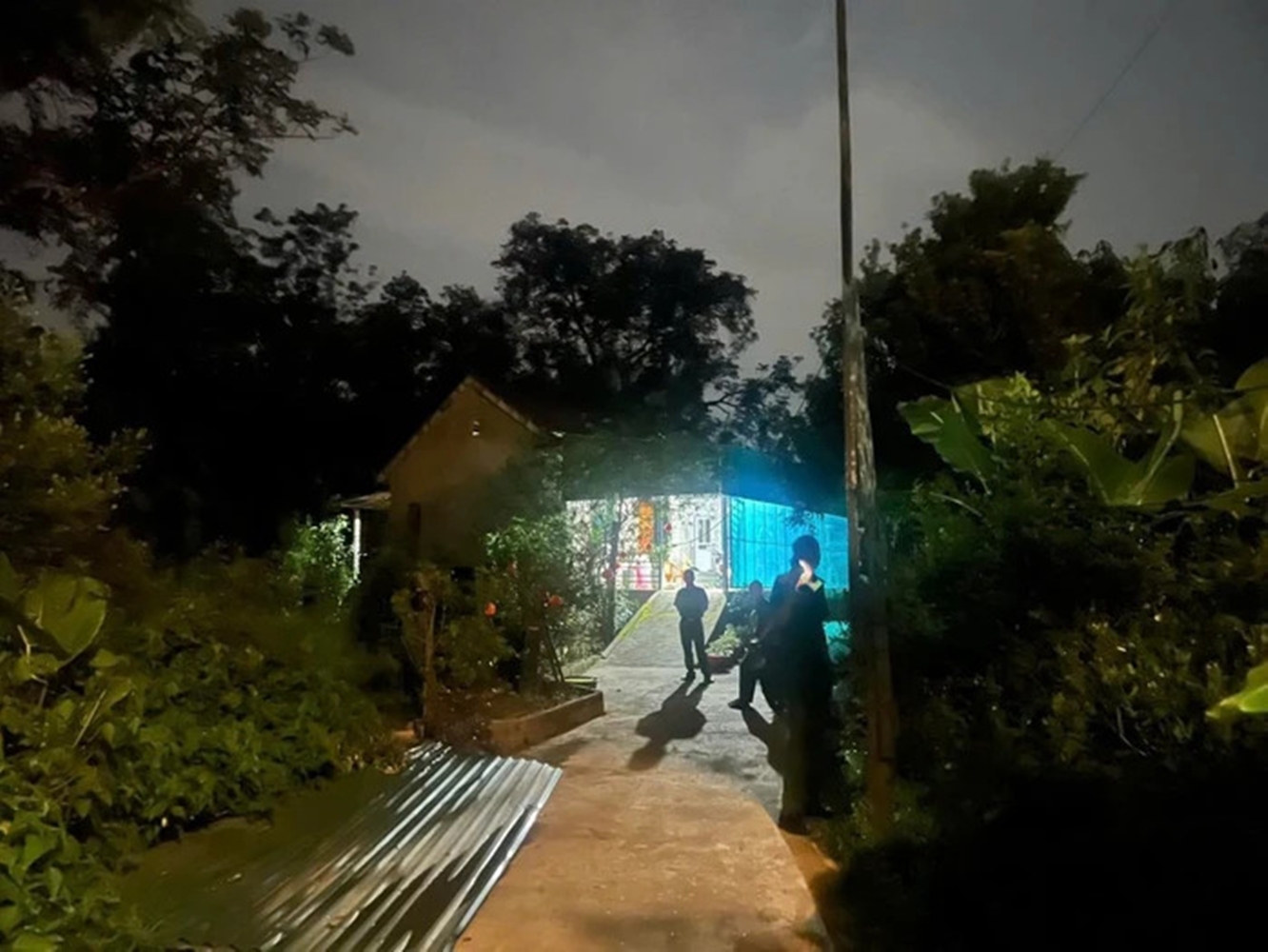 Tiến vào bên trong nhà, họ thấy bà Hiền nằm gục giữa nhà, cạnh con dao, xung quanh có nhiều vết máu loang lổ.