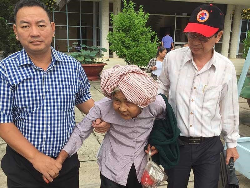 Cụ bà Nguyễn Thị Thương, 94 tuổi, từ Bình Dương đến Viện Kiểm Sát Nhân Dân tỉnh Tây Ninh nhận quyết định đình chỉ điều tra được ký từ 36 năm trước. (Hình: Pháp Luật TP.HCM)
