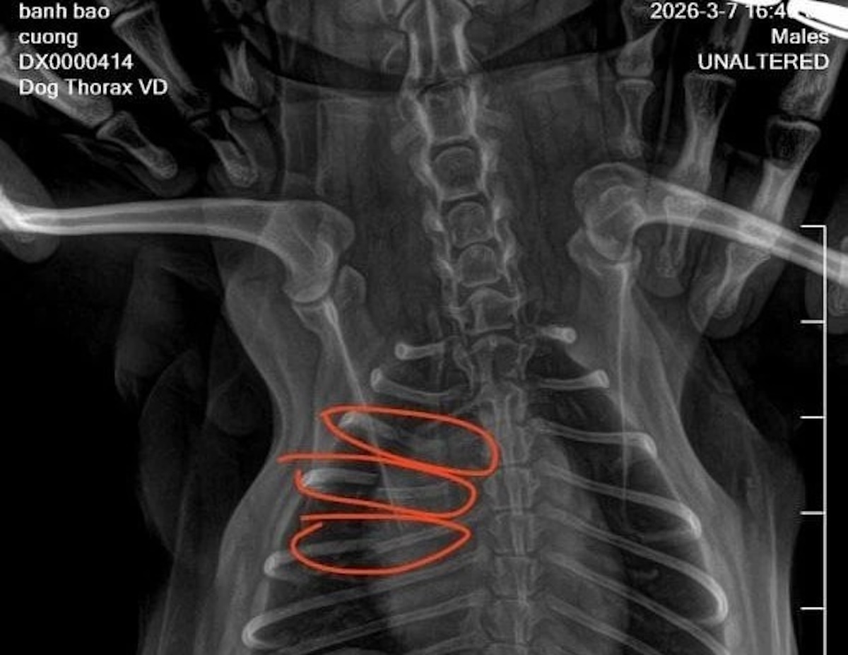Kết quả chụp X-quang cho thấy chú chó bị gãy ba xương sườn. Do chú chó quá nhỏ nên bác sĩ bảo không thể bó bột được, chỉ đợi nó tự liền xương và phục hồi.