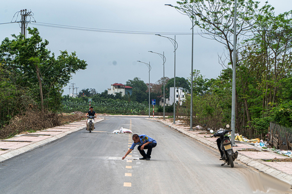 Ông Lê Văn Thu (65 tuổi, ở thôn Xuân Thụy, xã Kiêu Kỵ, huyện Gia Lâm) cho biết hôm trước đi làm về thấy hố ga gập ghềnh, nứt toác, nhiều đoạn bị sụt lún, ông phải dừng lại đặt các vật dụng xung quanh để cảnh báo nguy hiểm cho người đi đường.