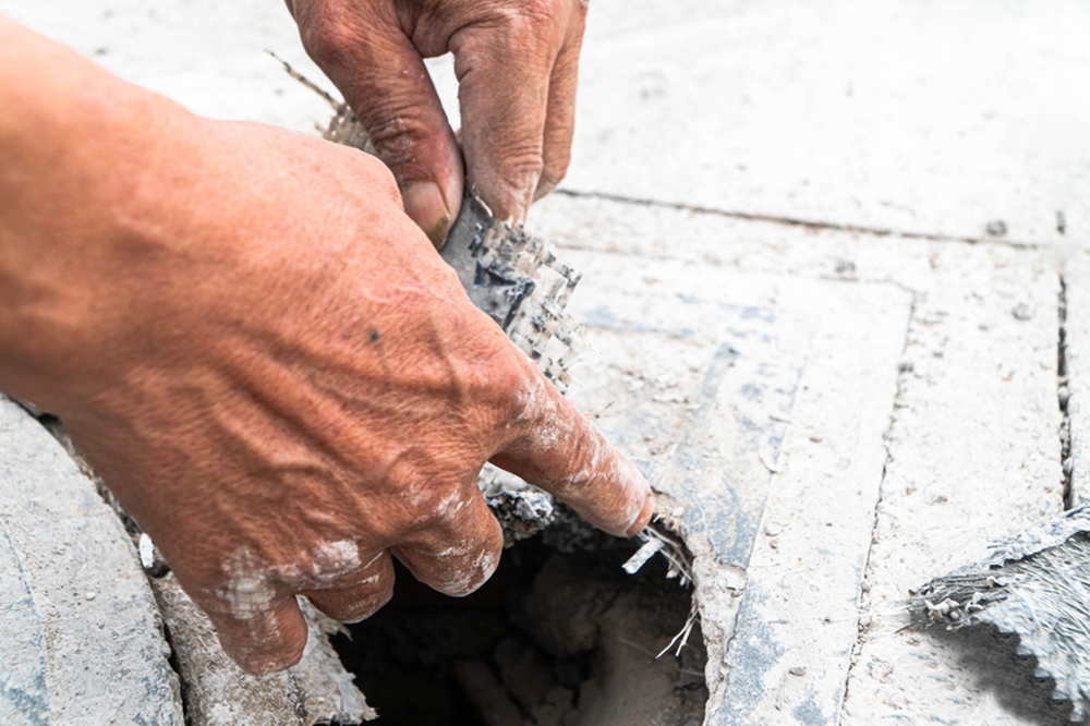 Việc bẻ vỡ phần nắp của hố ga rất dễ dàng, có thể dùng bằng tay. (Hình: Phạm Tuấn/Tuổi Trẻ)