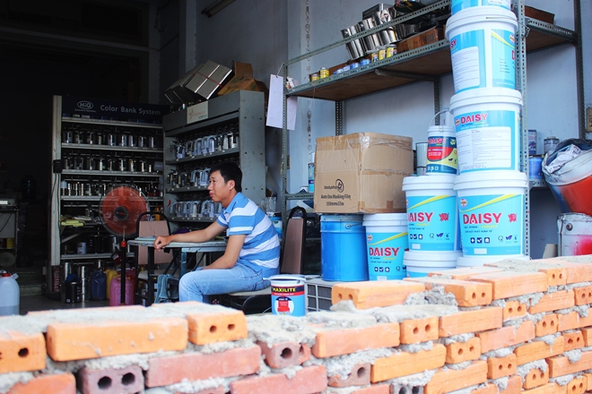 “Con đường này bụi mù mịt nên người ta đi theo đường tránh, nếu bất đắc dĩ chạy ngang đường này thì cũng ráng qua cho nhanh chứ không ai dừng lại mua hàng. Cửa hàng tôi cả tháng nay không có một khách vãng lai nào ghé xem hàng, doanh thu chỉ nhờ vào chuyển hàng cho các đại lý ở miền Tây,” bà Lê Thị Mỹ Lệ, chủ cơ sở trang trí nội thất Tiến Hòa cho biết.