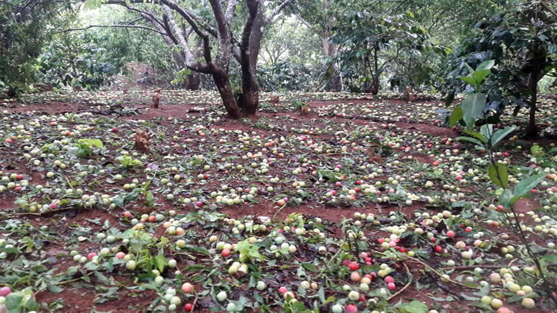 Trận mưa lớn kéo dài trong khoảng hơn 2 giờ đồng, đặc biệt là mưa đá với cường độ mạnh đã làm dập nát, hư hỏng nhiều diện tích cây căn quả, hoa màu của người dân địa phương.