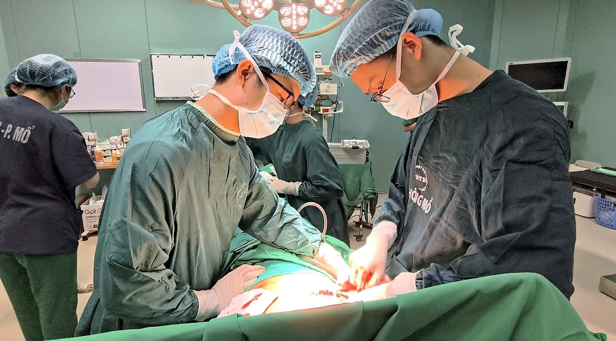 Các bác sĩ tiến hành phẫu thuật cắt lọc triệt để ổ áp xe, loại bỏ toàn bộ tổ chức hoại tử và mô nhiễm trùng.