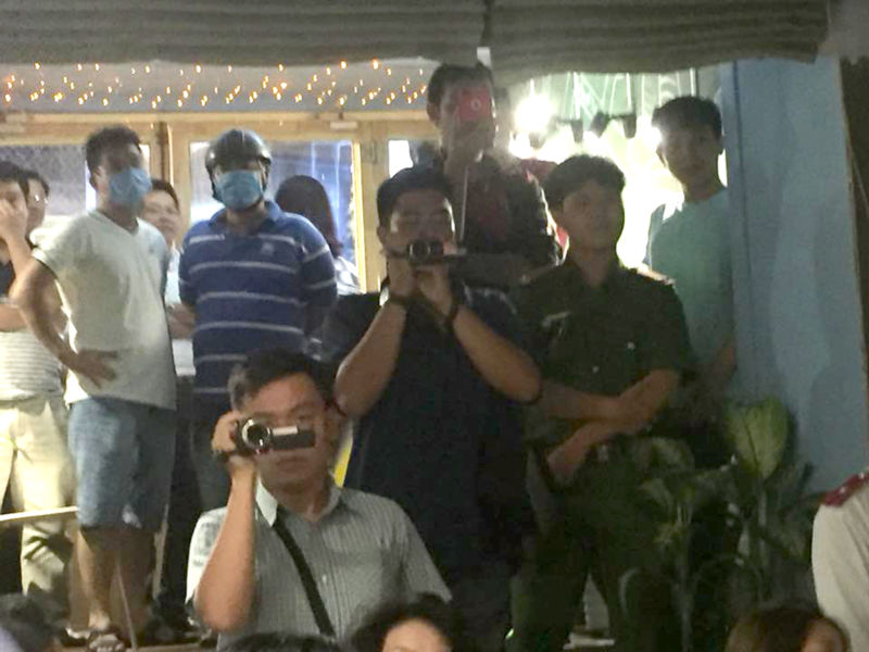“Hiện tại, tôi không thể liên lạc với nhà báo Phạm Đoan Trang. Theo một người nữ chứng kiến kể lại thì bà Trang bị hành hung rất nhiều. Đến 10 giờ 50, Nguyễn Tín và anh Nguyễn Đại đang bị giữ lại, làm việc bên trong quán. Những người khác đang ra về,” ông cho hay.