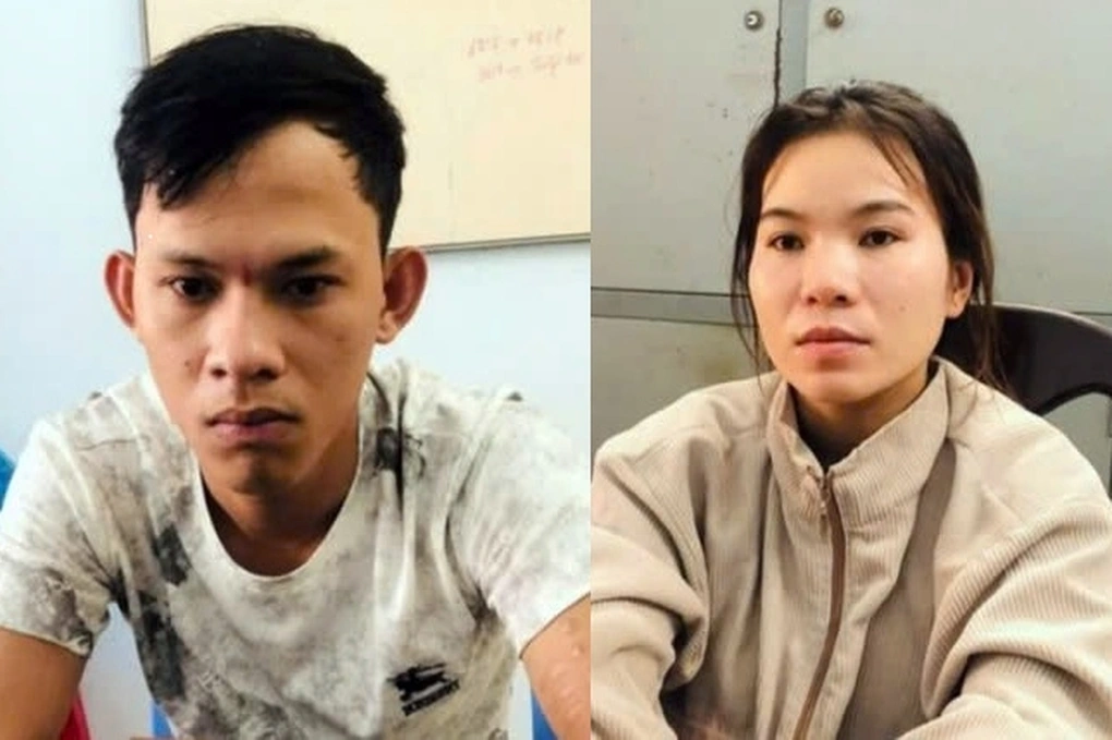 Vợ chồng nghi can Lê Long Thiên lúc bị bắt. (Hình: VNExpress)