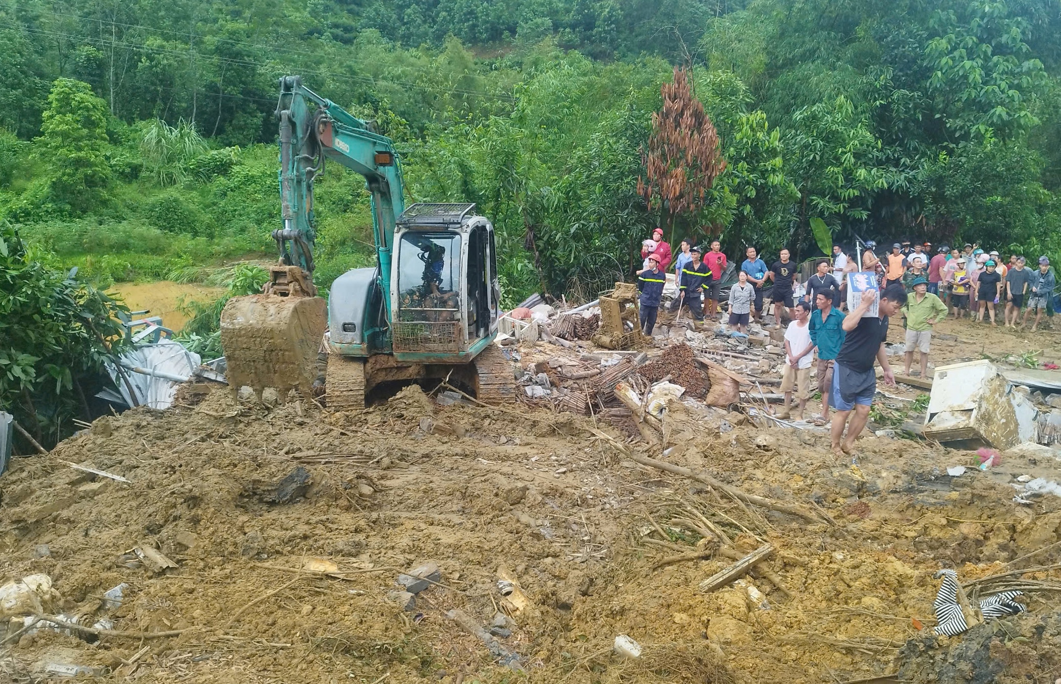 Nhà chức trách địa phương huy động máy móc để tìm kiếm những người nghi mất tích.