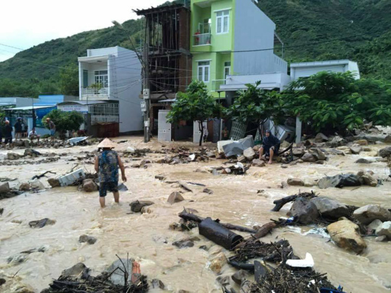 KHÁNH HÒA (NV) – Ðất đá sạt lở, nước ngập khiến nhiều ngôi nhà bị sập, nhiều xe hơi bị vùi lấp, nhiều trục đường chính tê liệt và nhiều khu dân cư bị thiệt hại nặng về nhà cửa, tài sản ở thành phố Nha Trang.