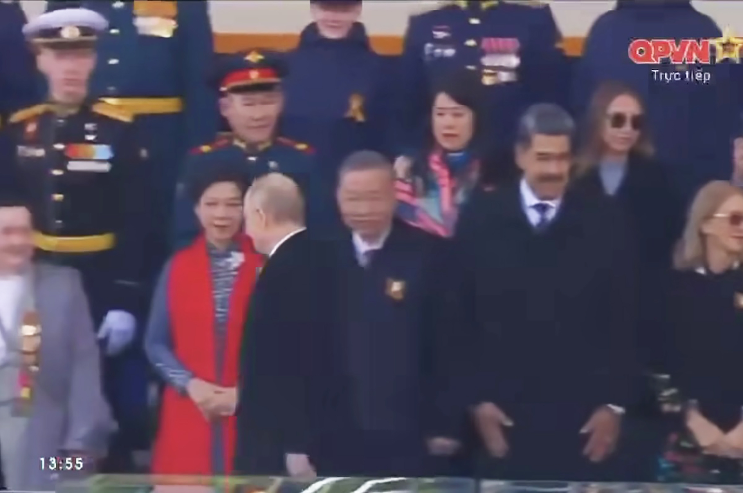 Trong đoạn video clip trực tiếp lễ duyệt binh do truyền hình Quốc Phòng Việt Nam (QPVN) đăng tải hôm 9 Tháng Năm, người ta thấy ông Putin bước ngang qua các nhà lãnh đạo khách mời, bắt tay một số người, ngoại trừ ông Tô Lâm.