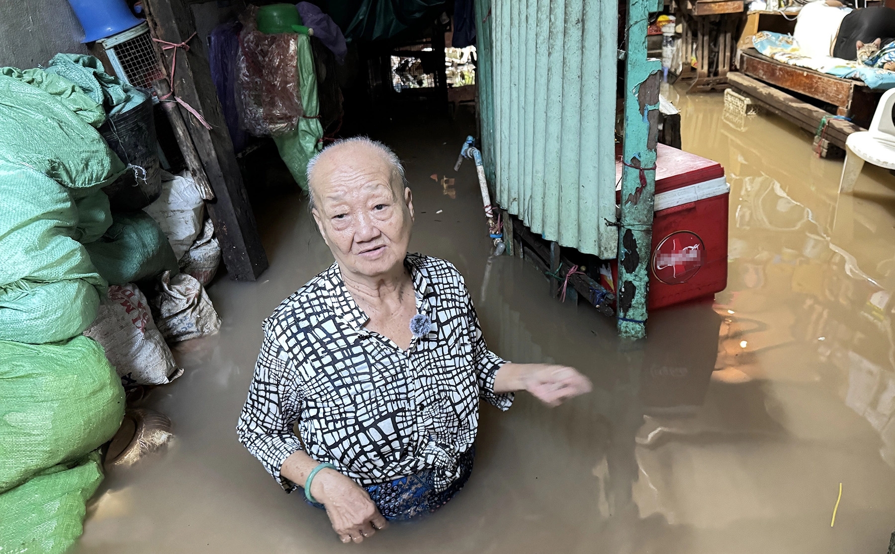 Trong căn nhà nhỏ ở hẻm 29, đường Bùi Hữu Nghĩa, phường Bình Thủy, bà Trần Ngọc Thụy, 71 tuổi, cho biết nước đã ngập liên tục ba ngày qua.