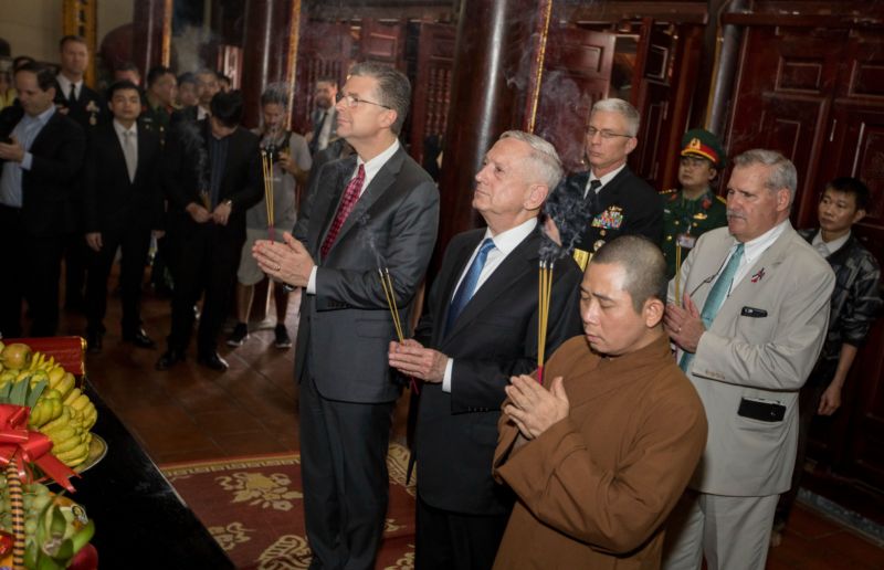 “Đây là một sự hợp tác, phối hợp, và cố vấn lẫn nhau một cách bình thường,” ông Mattis nói về quan hệ Mỹ-Việt trước khi rời Việt Nam. “Và chúng tôi bắt đầu mọi thứ bằng cách để lại quá khứ sau lưng.”